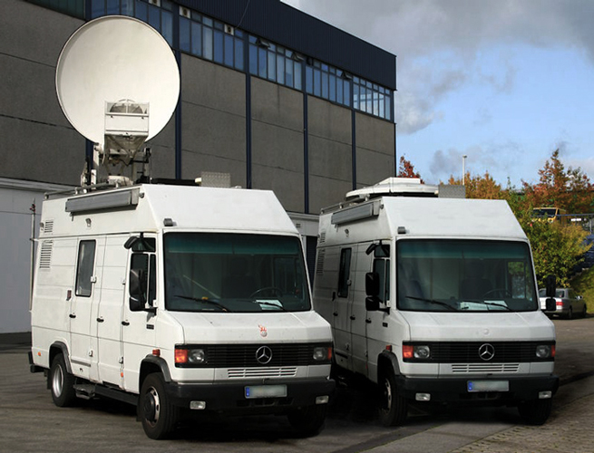| Lichtwagen: Filmlicht Lichtwagen: EB-Licht FlyAway Für mobile Satellitenübertragung ohne SNG |